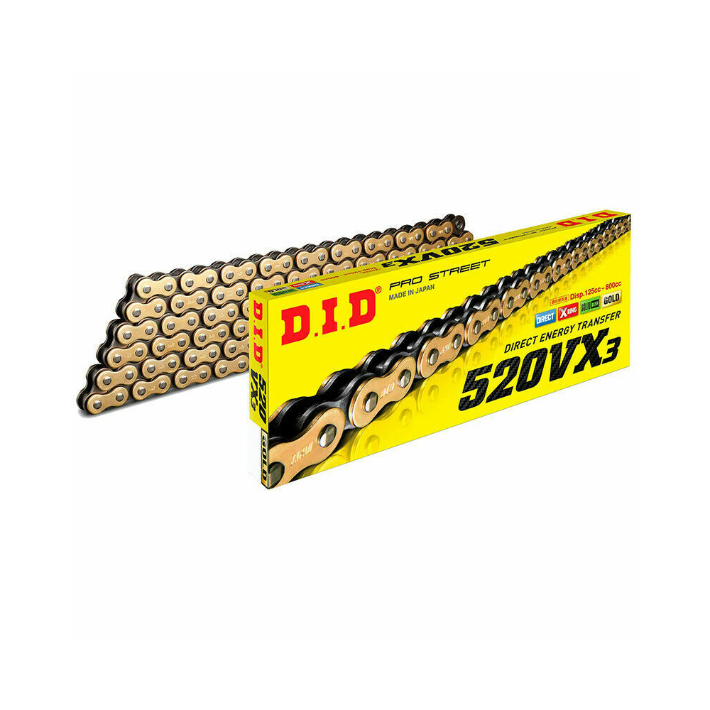 Lanac DID 520VX3 120 linkova Pro-street X-Ring zlatno-crni