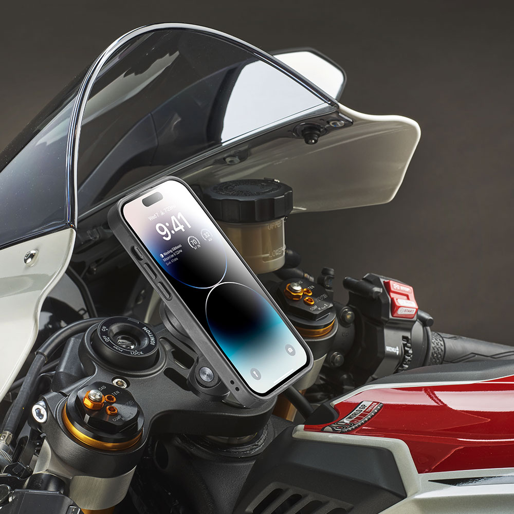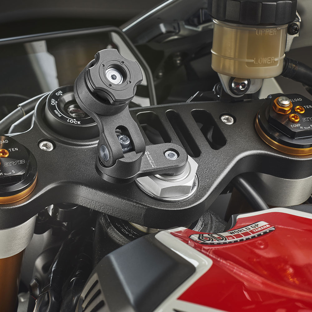 QuikLox Fork Stem vam omogućava da fiksirate držač za pametni telefon unutar glave upravljača. Univerzalni držač je podesiv za unutrašnje prečnike između 13 i 25.4 mm (1/₂ do 1 inča). Multi-podesiv vam omogućava da usmerite svoj pametni telefon za 360° horizontalno i 90° vertikalno. Napravljen je od visoko čvrstog plastičnog materijala i anodizirane aluminijumske baze.